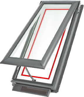Locate the metal plate on your skylight or roof window by looking on the frame in the suggested areas indicated by the red lines listed below.