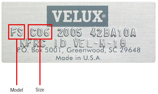 How to locate the serial number and identify the model and size of your skylight.